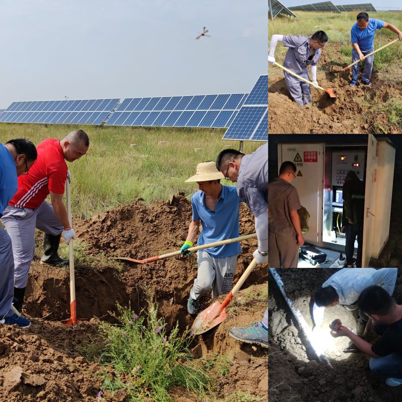 为抢时间、保通信、不损伤电缆,泽霖公司迅速组织运维人员对故障点一(厂区内杆塔下20米左右位置)人工开挖寻找受损通信光缆,同时协调联系光缆熔接人员尽快赶赴现场;经排查,巡查人员还发现第二故障点,是线路上有第三方企业施工挖断了光伏电站通信光缆,导致全站通信中断。未迅速修复光缆通讯工作,泽霖农业公司及时与施工单位取得联系,协调了赔偿事宜后恢复通信。经过全体工作人员上下齐心、团结一致,二处故障点最终于22日中午前全部抢修完毕通信恢复正常。