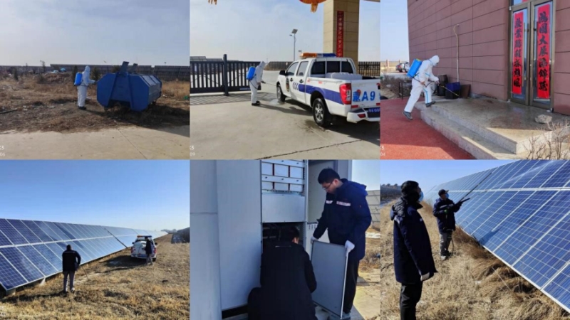 图为光伏电站员工疫情期间进行日常消杀及设备维修检修工作