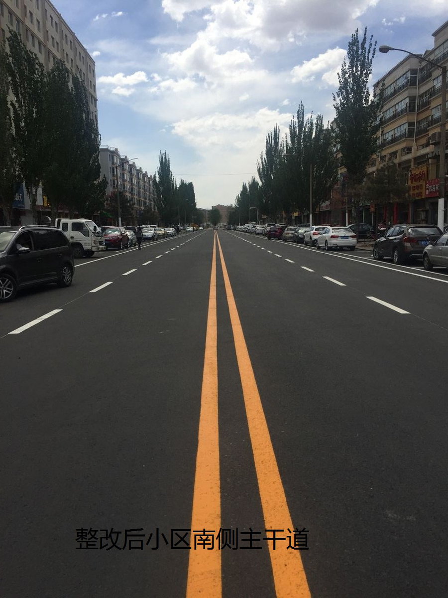 工程改造:小区内22300㎡沥青路面维修、1026m路缘石铺设、18838m道路划线已完成;翻新混凝土路面17496㎡;修补混凝土路面6760㎡;种植苗木15225株、花卉10000株、铺设草皮26000㎡,土方量1000m,绿化栽植面积共计24300㎡;更换破损井盖、雨篦子754个;粉刷住宅楼外墙及商业街两侧130000㎡;住宅楼内墙面刷白111750㎡;砌围墙、抹灰790m³;院墙粉刷1023.52㎡;商业街石球防腐柱子97个;层外墙涂料41000㎡;更换垃圾桶350个;主路路灯30套;亮化300个;安装监控、楼宇对讲费用合计240万元。